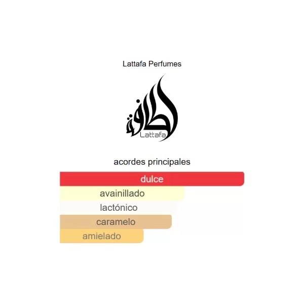 Lattafa Eclaire es una fragancia gourmand‑floral que combina una apertura dulce de caramelo, leche y azúcar, seguida de un corazón floral con flores blancas y miel, y una base cálida de vainilla, praliné y almizcle. Su aroma es cremoso, envolvente y elegante, ideal para ocasiones especiales o climas frescos.