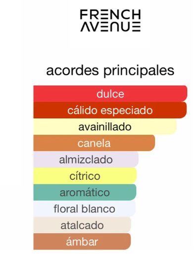 Liquid Brun de French Avenue es una fragancia oriental-especiada y gourmand, con apertura de canela, bergamota, cardamomo y flor de azahar, corazón de vainilla bourbon y elemi, y fondo de praliné, ambroxán, almizcle y madera de guaic.