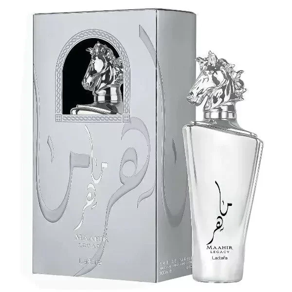 Maahir Legacy es una fragancia masculina fresca-aromática y especiada: con salida de lima, pomelo, lavanda y menta, un corazón de pimienta negra, bayas de enebro y romero, y un fondo cálido de ambroxan, musgo de roble, vetiver, haba tonka y cachemira. Su aroma resulta vibrante, limpio y elegante, ideal para día o clima cálido y uso cotidiano.