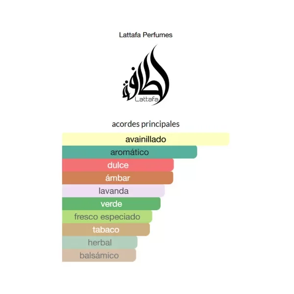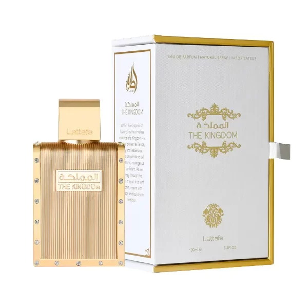 Lattafa The Kingdom es una fragancia masculina aromática‑oriental que combina notas frescas y especiadas con un fondo cálido y sofisticado. Su apertura incluye salvia, lavanda y menta, seguida de un corazón con tabaco, vainilla y flor de azahar, y una base rica de benjuí, haba tonka y ládano.